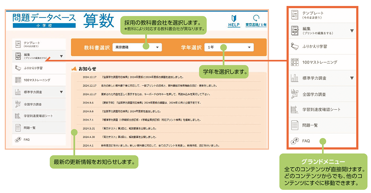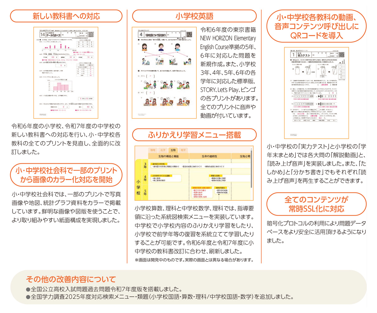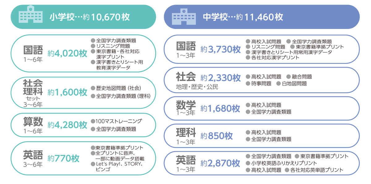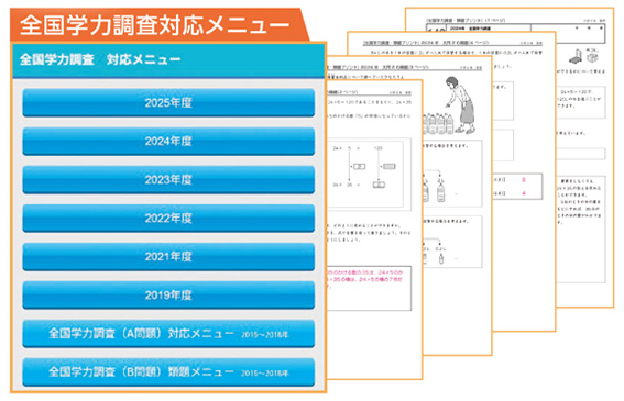 全国学力調査対応メニューや公立高校入試問題(直近3年分)など、先生方のニーズにも対応!