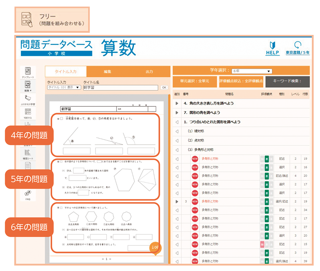 「テンプレート」と「フリー」で自由な組み合わせ問題作成機能