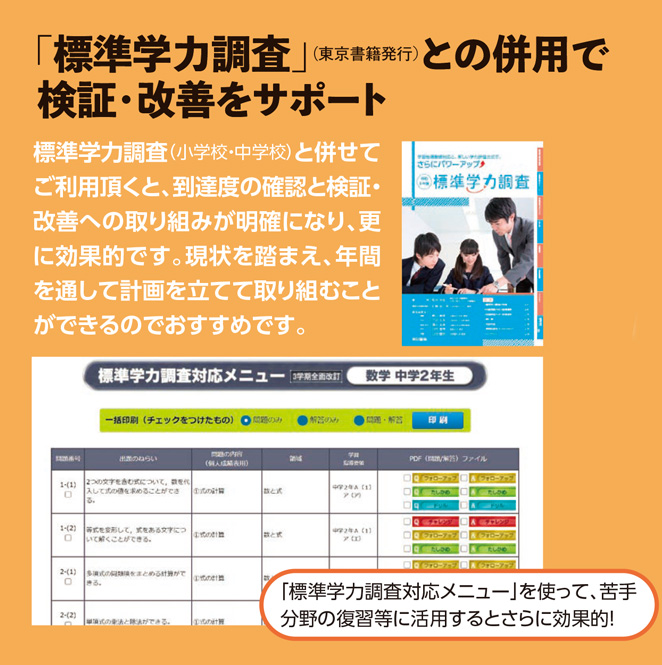 東京書籍「標準学力調査」との併用で検証・改善をサポート