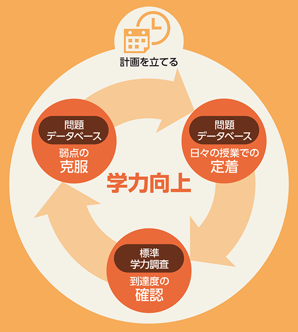 弊社発行の「標準学力調査(小学校・中学校)」とあわせてご利用いただくと、到達度の確認と検証・改善への取り組みが明確になり、さらに効果的です。現状を踏まえ、年間を通して計画を立てて取り組むことができるのでおすすめです。