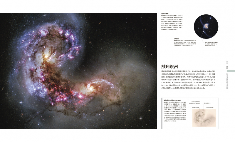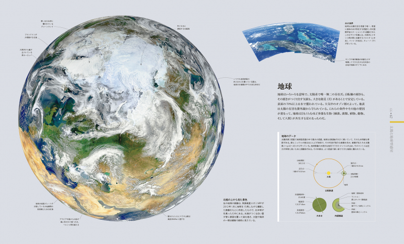 また、スミソニアン協会の監修のもと、最新の研究に基づく宇宙の姿を、観測機器、地球と太陽系、銀河、宇宙の果て、そして、宇宙の誕生から終わりまで、天体の関係を整理した章立てで、網羅的にして過不足なく解説する図鑑。