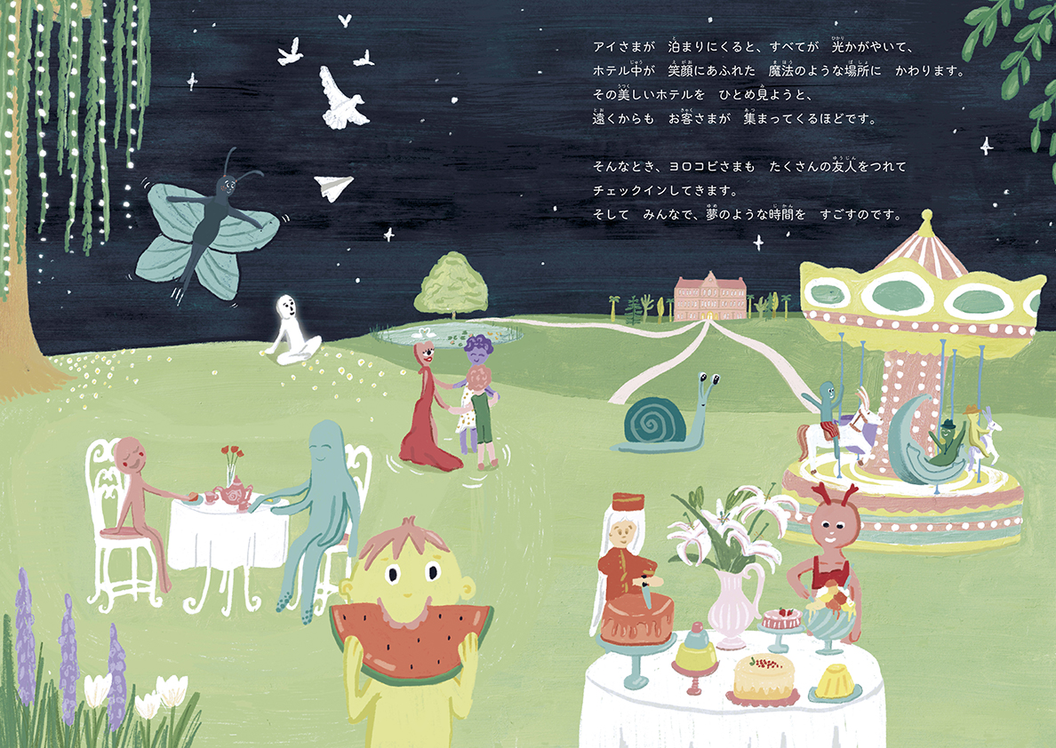 翻訳は、絵本の世界のみならず、さまざまな分野で大活躍のtupera tuperaさんに引き受けていただきました。「feelings」を「オキモチさま」と訳すなど、より登場するキャラクターへの愛着がわくような、日本語版独自の世界観をつくりあげてくださりました。もともとファンだったので、3人で訳を読み合わせながら議論できたことは今思い返しても感慨深いです。
