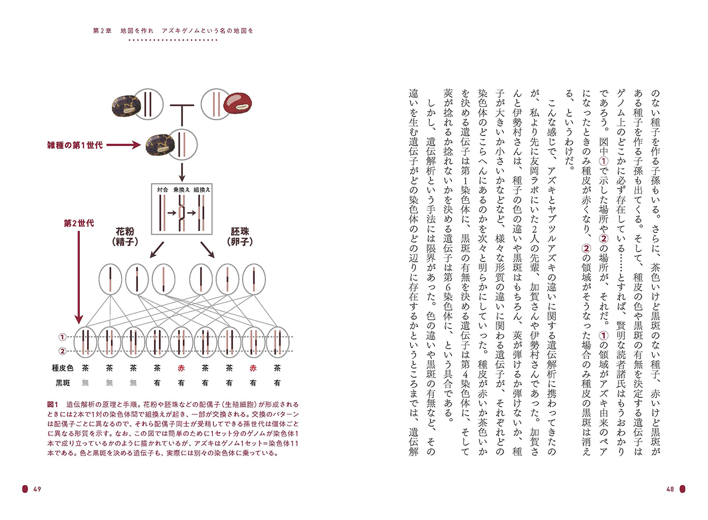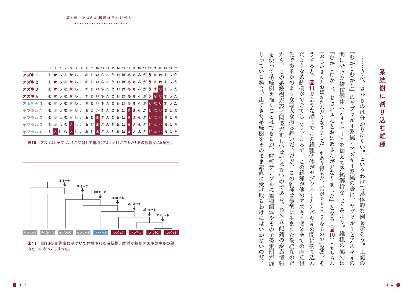 この「アズキ縄文起源説」に至る物語は、筆者が採用面接に落ちるところから始まります。アメリカから帰国した筆者は、新しい職場の勤務初日、上司に連れられて温室を訪れます。そこで出会ったのは、同じ種でありながら、葉の形もツルの伸び方もそれぞれに異なる、多様な「アズキの仲間たち」でした。この出会いが、和菓子に欠かせない「赤いアズキ」の起源を探るプロジェクトへとつながっていきます。